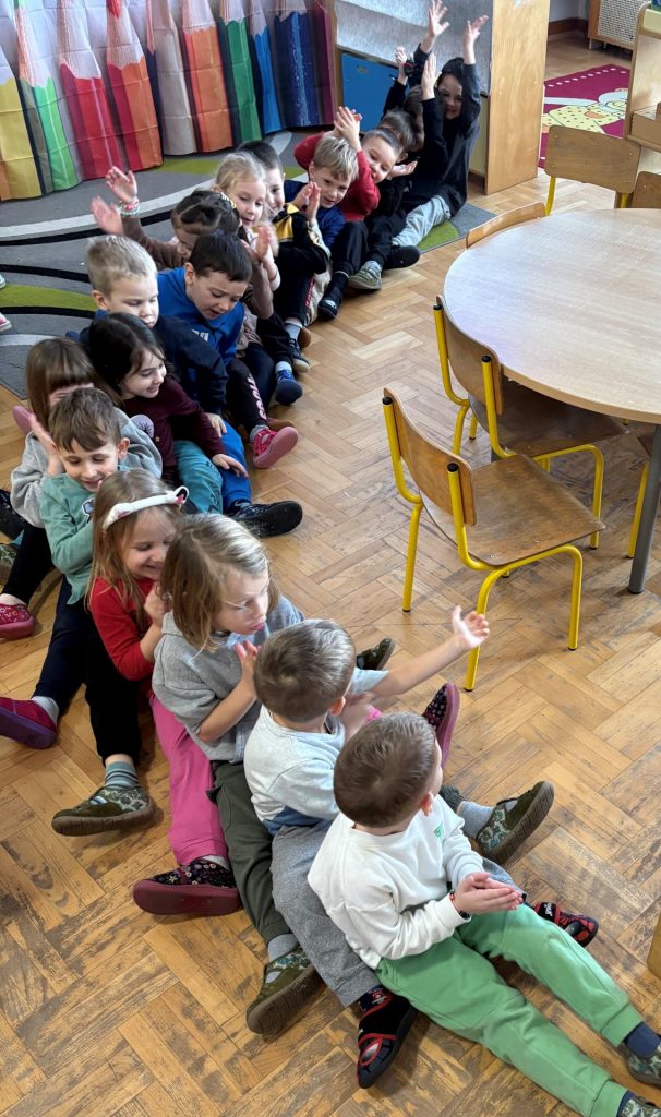 Učimo i novu pjesmicu “Jure, jure saonice” pa usvajamo stihove, pokrete i melodiju kroz simboličku igru.