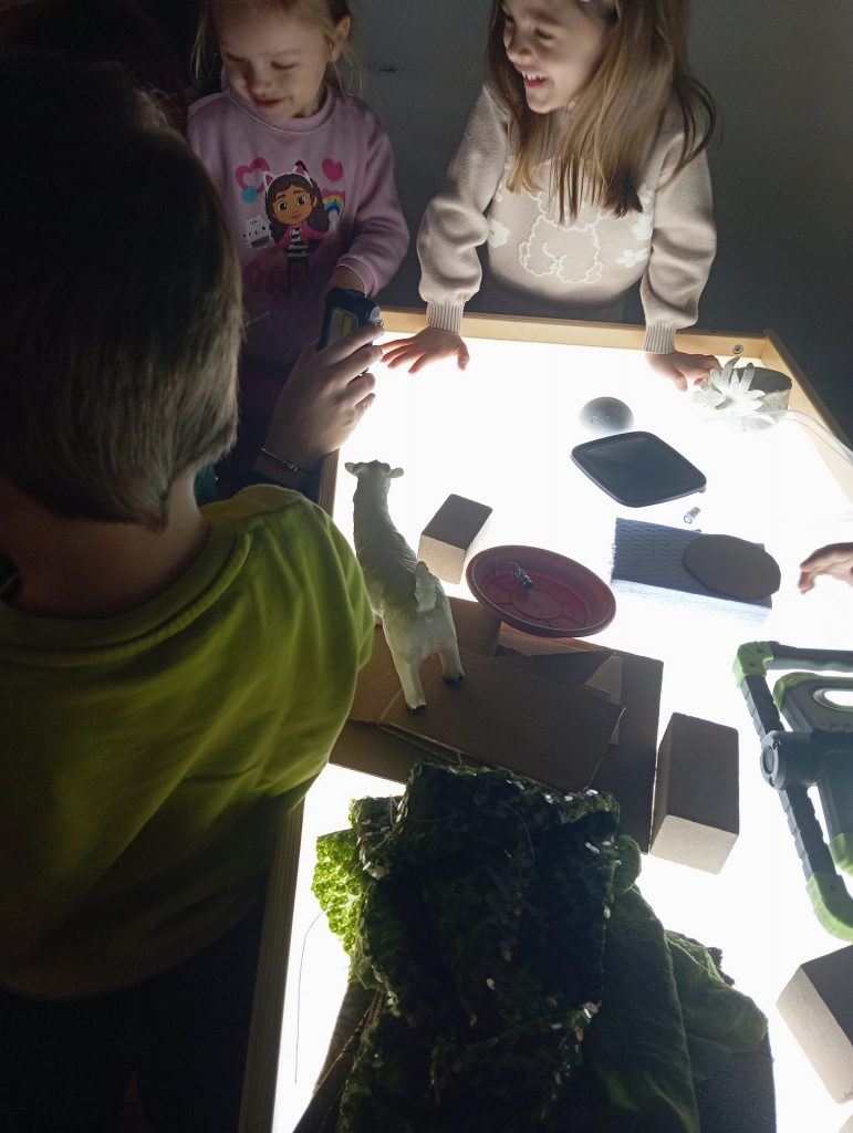 Djeca su raznovrsnim materijalnim poticajima i pomno biranim aktivnostima istraživala svjetlo-sjenu, kosine, vodu, led i snijeg.
