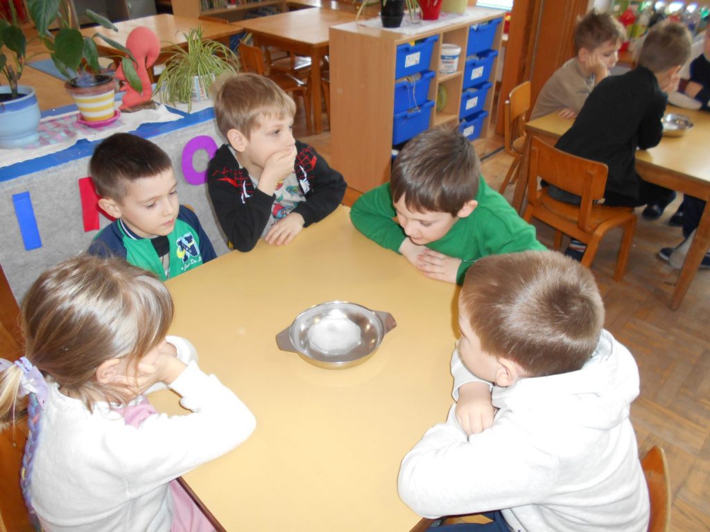 Prije samog eksperimenta razgovarali smo o tome što bi najbolje moglo otopiti led. Razmišljanja o tome su bila različita, no većina djece je rekla da sol najbolje otapa led.