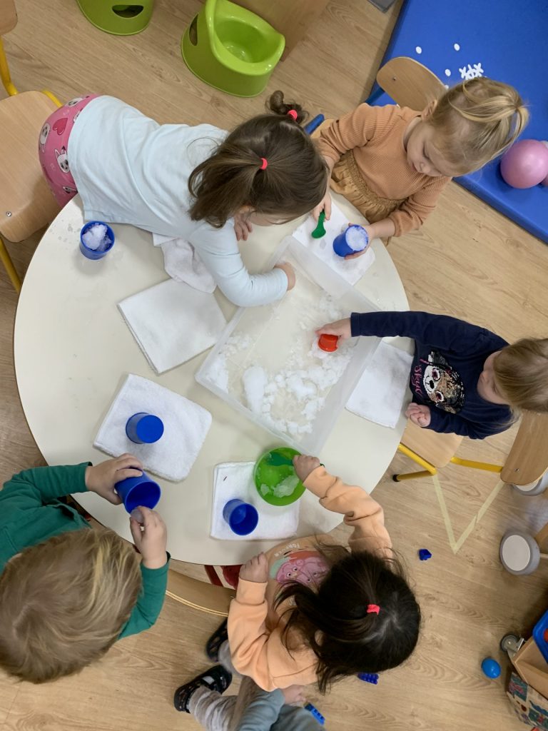 Kod djece potičemo razvijanje osjećaja za ritam i pokret, jačanje mišića nogu i ravnoteže, razvoj fine motorike (pincetni hvat), koordinacije oko – ruka, logičkog zaključivanja, strpljenja pri rješavanju problema te istraživanje promjena agregatnih stanja (topljenje snijega i leda), uočavanje svojstava materijala (hladno, mokro).