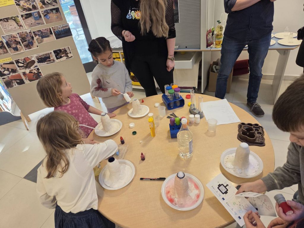 Djeca su izrađivala modele vulkana te kroz pokus sa sodom bikarbonom i octom promatrala kemijsku reakciju. Učili su o uzročno-posljedičnim vezama, stvaranju plina te razvijali preciznost i finu motoriku. Programiranjem Bee-bot robota djeca su rješavala ekološke zadatke – razvrstavala otpad i usvajala osnovne naredbe programiranja (naprijed, nazad, lijevo, desno). Aktivnost je poticala algoritamsko razmišljanje, planiranje i rješavanje problema.