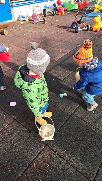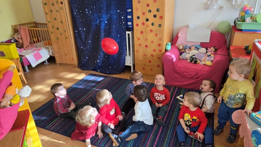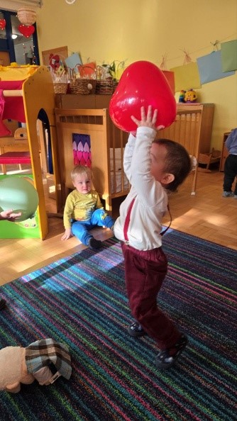 Pronalaskom paketića djeca su se razveselila i potaknula na istraživanje i zajedničku igru. Uz puno smijeha su marljivo tražila skrivene “ftičeke, a potom smo druženje nastavili plesom uz prigodnu glazbu i balone u obliku srca.